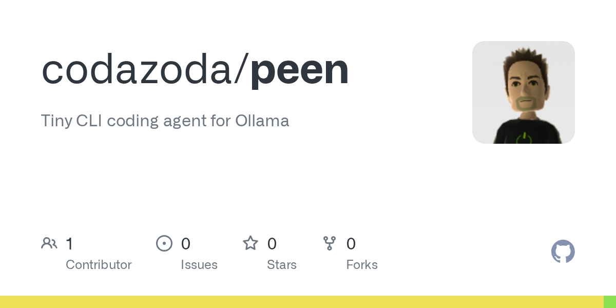 A deliberately minimalist “Claude Code / OpenCode”-style CLI written in Node.js that talks to Ollama over HTTP and can run shell commands so the model can inspect and modify your project using tools like cat, ls, grep, and echo > file. Peen was created by Joel Dare.