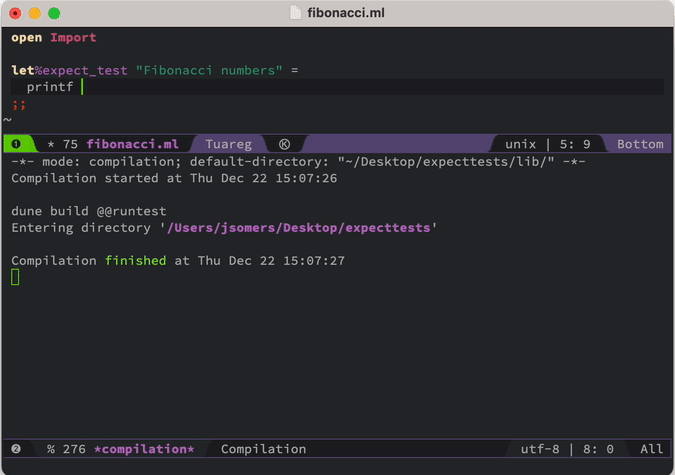 test” you just drop an [%expect] block below some code and it will