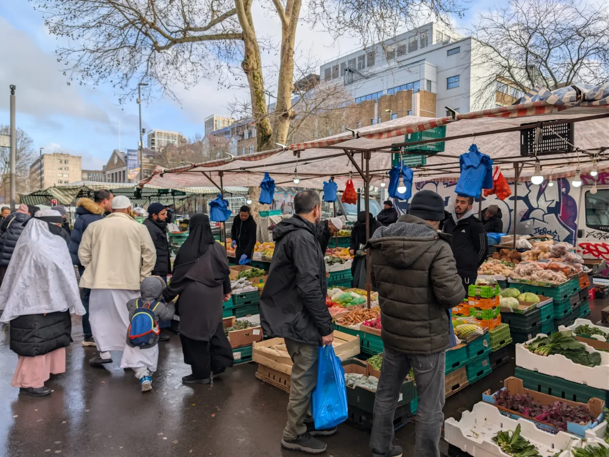 Earlier in the day, in Whitechapel Road Market, two young women browse a rack of brightly coloured jalabiyas, pausing to check the stitching. Asked about the election, they shrug. They had heard older relatives talking about it, one said, but it felt distant.