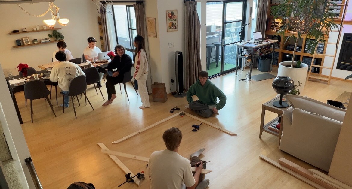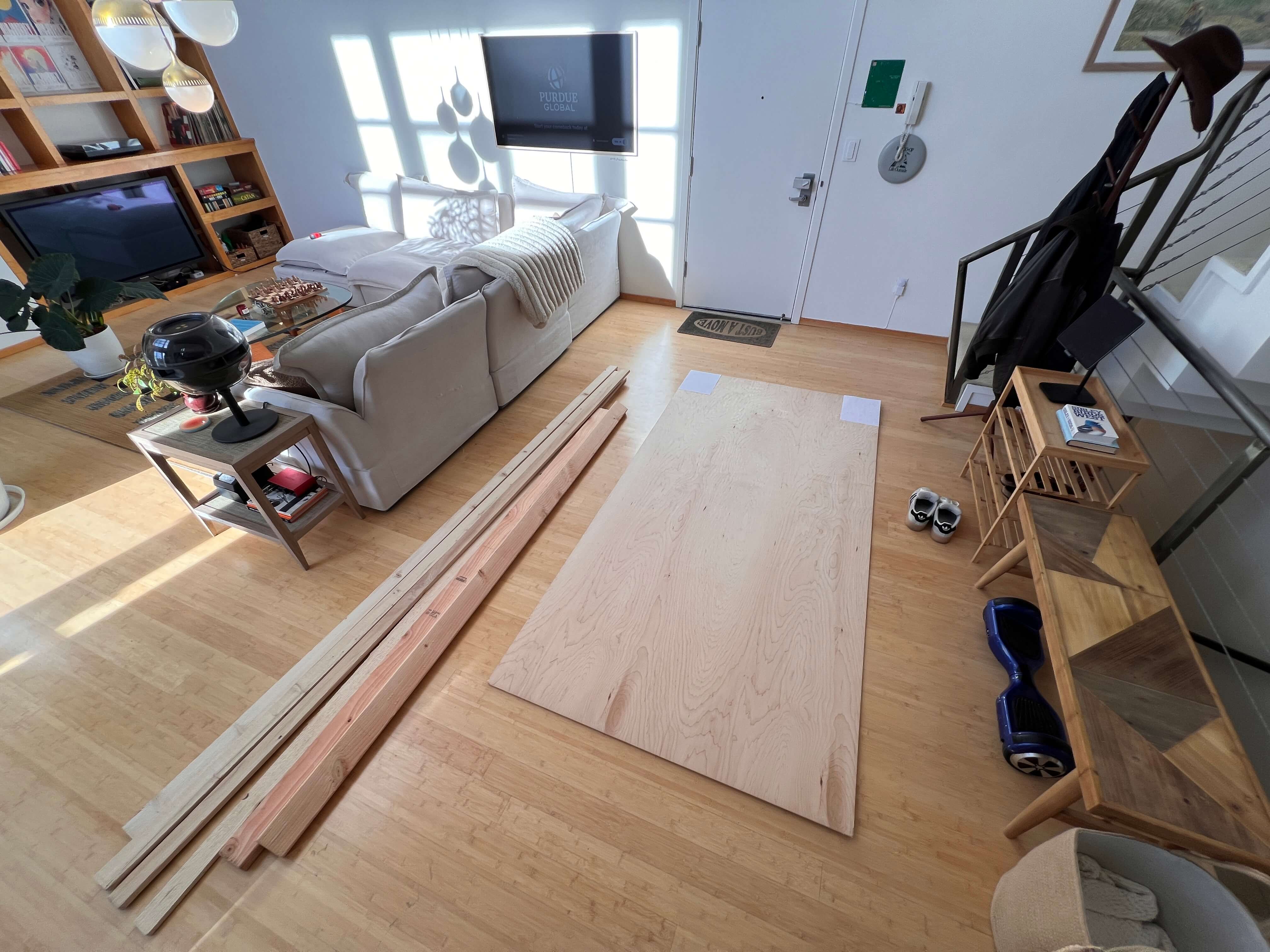 … which was certainly a good workout. I figured that processing all this lumber in my apartment would take quite a while solo, and I was on a bit of a time crunch finishing this build, so I ordered a bunch of pizzas and had a few friends over to help out!
