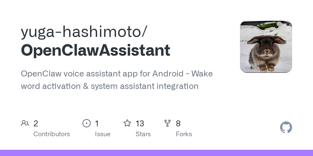 GitHub – yuga-hashimoto/OpenClawAssistant: OpenClaw voice assistant app for Android