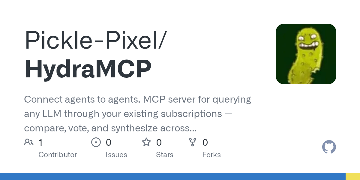 Pickle-Pixel/HydraMCP: Connect agents to agents. MCP server for querying any LLM through your existing subscriptions — compare, vote, and synthesize across GPT, Gemini, Claude, and local models from one terminal.