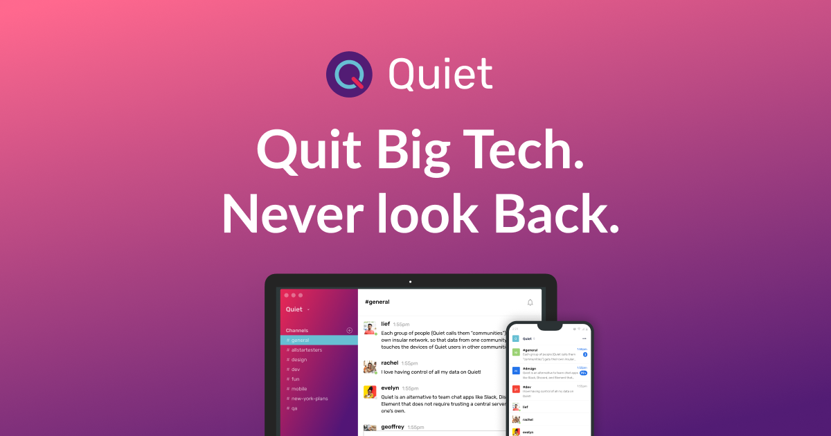 Unlike Slack, Discord, WhatsApp, and the rest, Quiet is completely open source. This means there is no vendor