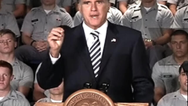 Republican presidential candidate Mitt Romney on Friday said President Obama has weakened the country economically, militarily and in terms of “the enduring strength of our values.”