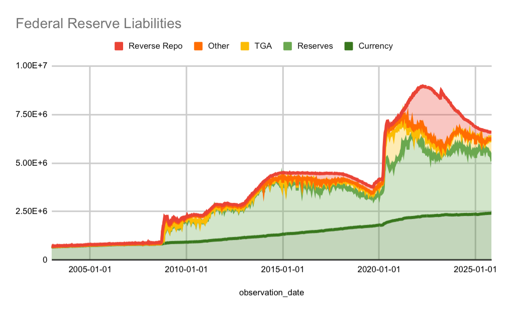 For the first time in the Federal Reserves history, the liabilities of the Federal Reserve now longer track the currency in circulation.