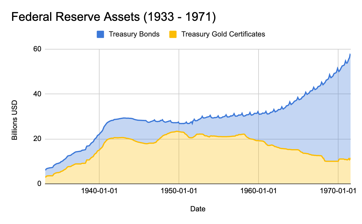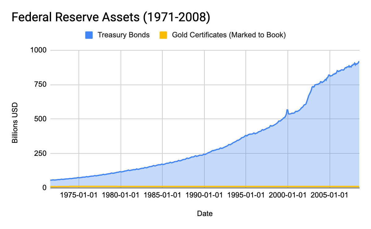 So before 1971, everything was still essentially a gold certificate – dollars and Treasury certificates were redeemable on demand for gold, and Treasury bonds you had to wait a little, but eventually you would get your gold back.