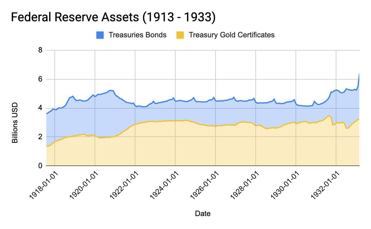 So during this period from 1913 to 1933, this is what the Federal Reserve’s assets looked like on their balance sheet:
