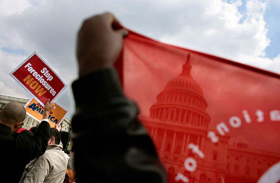 About 350 members of the Association of Community Organizations for Reform Now gather for a rally in front of the U.S. Capitol March 11, 2008, to raise awareness of home foreclosure crisis and encourage Congress to help LMI families stay in their homes. (Photo by Chip Somodevilla/Getty Images)