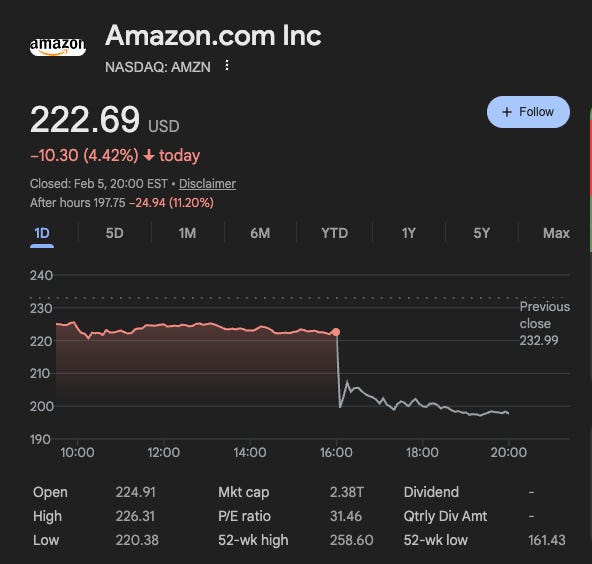 These days, the market seems to have both concluded that AI will disrupt software, services, and data providers, and that big tech companies such as Amazon and Alphabet writing $200B capex checks are bad.