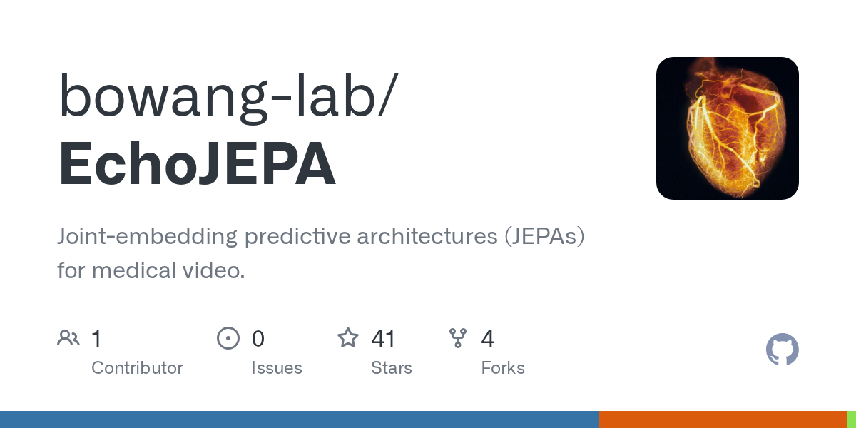 bowang-lab/EchoJEPA: Joint-embedding predictive architectures (JEPAs) for medical video.