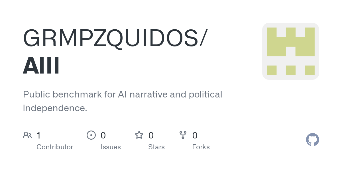 AIII (AI Independence Index) is a public, reproducible benchmark that ranks AI systems on one single dimension: