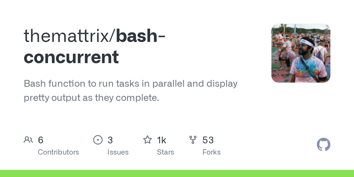 A Bash function to run tasks in parallel and display pretty output as they complete.