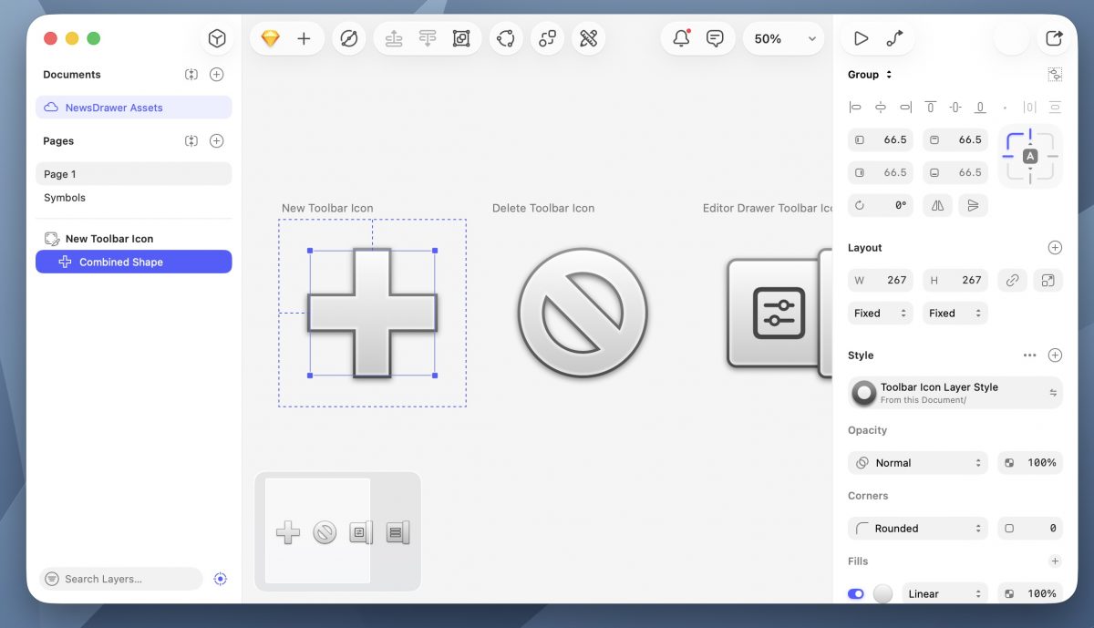 As a first step, I began drawing some classic-style toolbar icons using the amazing Sketch app, which is really one of the last great professional Mac apps.