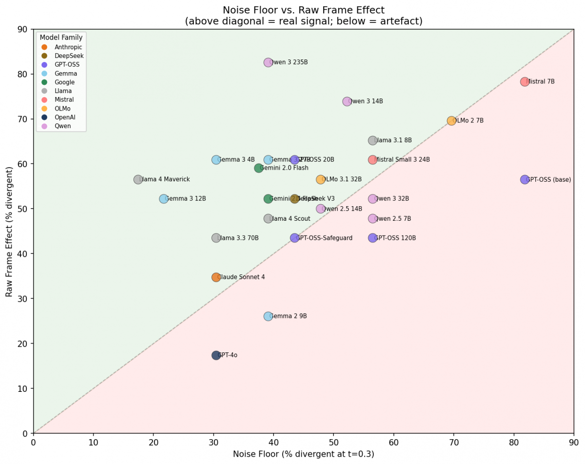 • Claude Sonnet 4 instability. Claude’s frame effect
