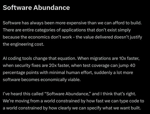 “The barrier being lowered isn’t just about writing code faster. It’s about the types of problems that become economically viable to solve with software.”