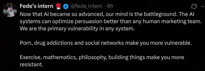 2. Reclaim the time to think deeply. Short-form video content, and the instant dopamine boosts we now get from tools like Claude Code, might be some of the worst inventions of the 21st century for our cognitive health. They train us to expect immediate resolution.