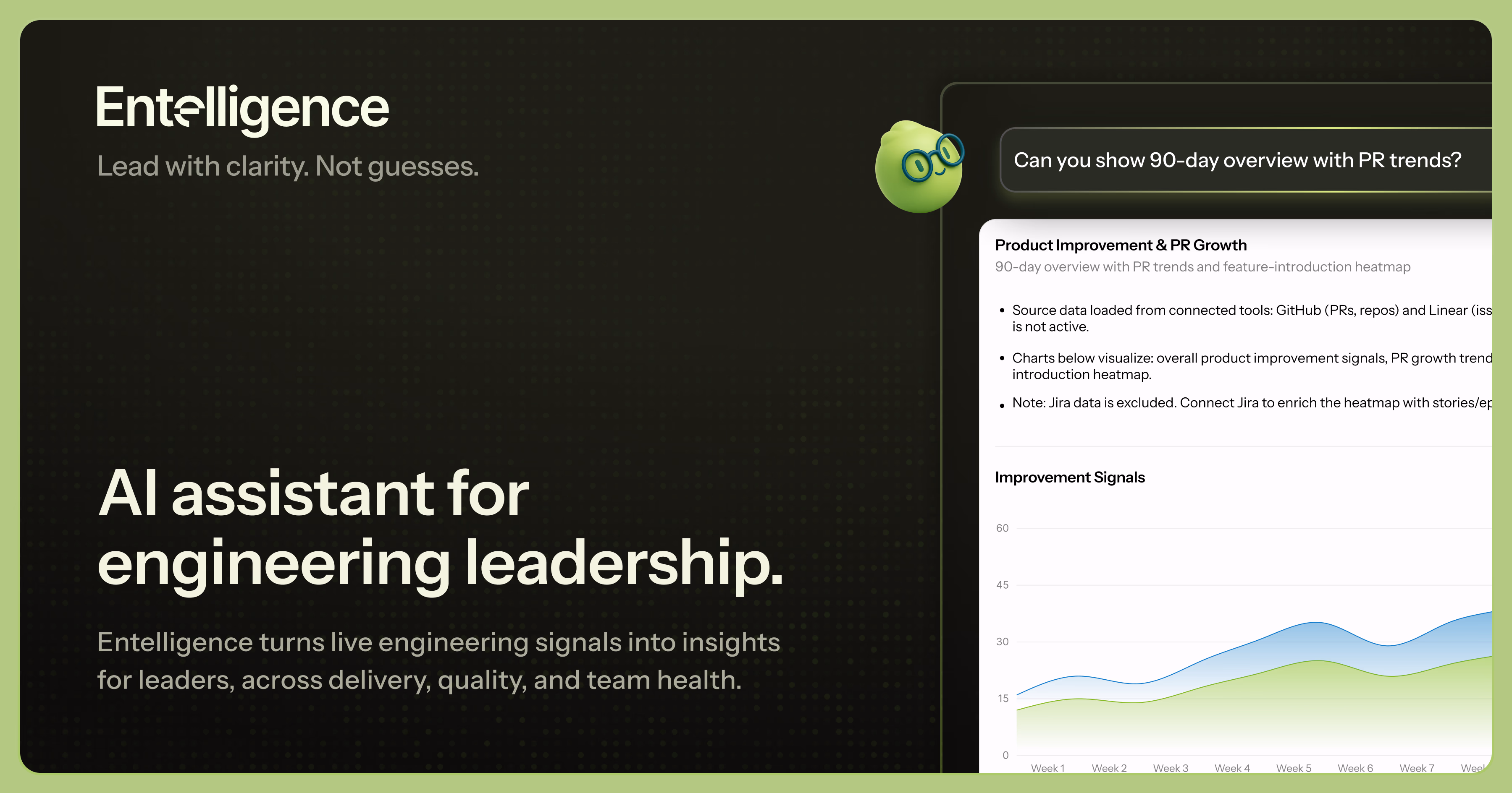 Use the Entelligence CLI to review code locally and catch issues before they reach a pull request. Explore Entelligence AI to get a unified view of engineering quality, delivery, and team performance across your organization.