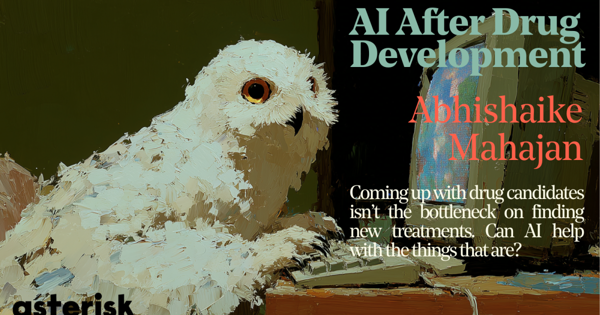 Abhi: Obviously, take my opinion with a grain of salt. The big reason I wanted to work at a company that is closer to clinical stage machine learning is that, ultimately, most of the problems with drug development relate to the clinical stage. It is very rare that we don’t have enough interesting ideas at the very beginning. Rather, the problem is that testing each one of those ideas is enormously expensive. If your goal is to make drug discovery better, you can do one of two things. You can either improve the physical shot itself to begin with — by creating new and unique binders, like BindCraft — or you can improve your ability to shoot in the first place. I see clinical stage companies as very focused on the latter, which I think is of much higher importance.