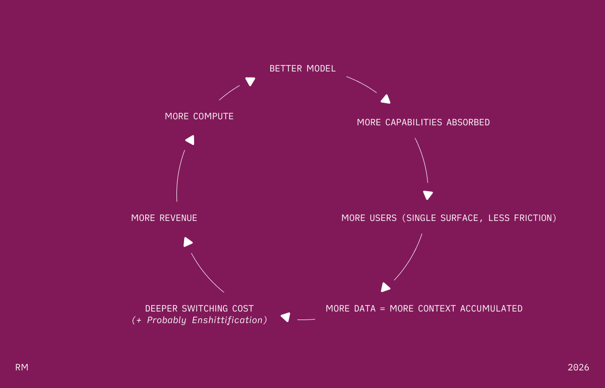 OpenAI, Google, Anthrophic already try to be fat today. This is not some future vision. Claude is slowly an interface that answers everything. They want to win the user relationship. But they are also start to win over the execution layer. Not so sure how much air is stilll underneath. Specialized sources exist. And exist.