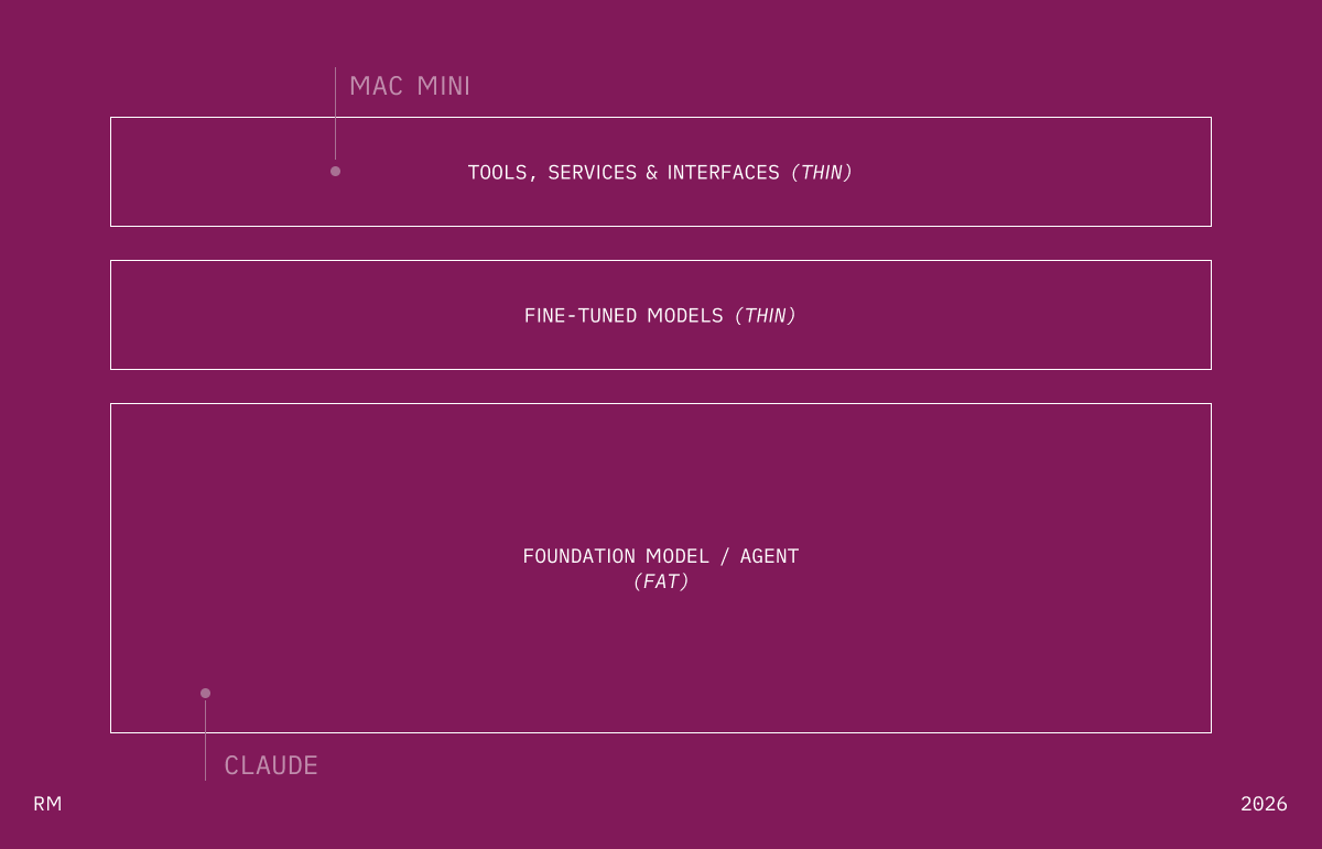 Building at the user layer — the Fat Agent lens is probably right. You’re either a foundation model provider or you’re competing with one. Your moat is context, trust, distribution. Gravity game.