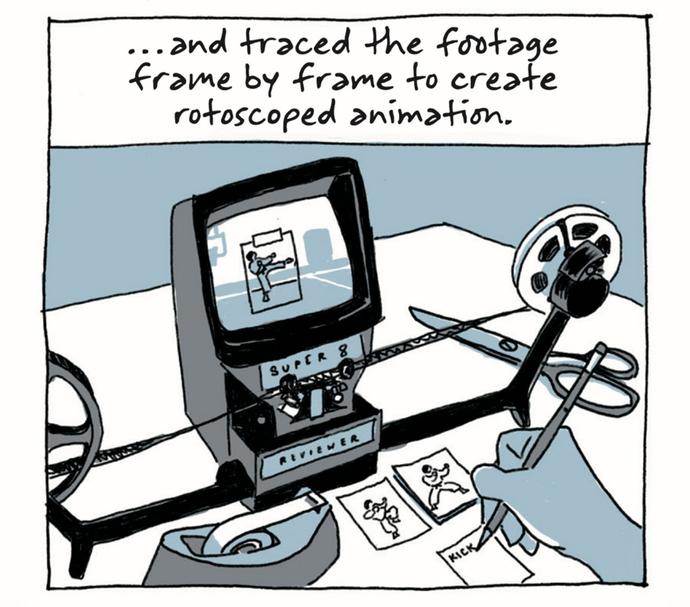 The trick originated in animated films — an aid for the movement of the humans in projects like Snow White (1937). Disney’s animators traced footage of live actors and deviated: they tweaked shapes, removed frames, kept the best poses. Mechner didn’t know that yet, but he did know that his own hand-drawn animation was “stiff,” and not the “realistic simulation of karate fighting” he wanted.