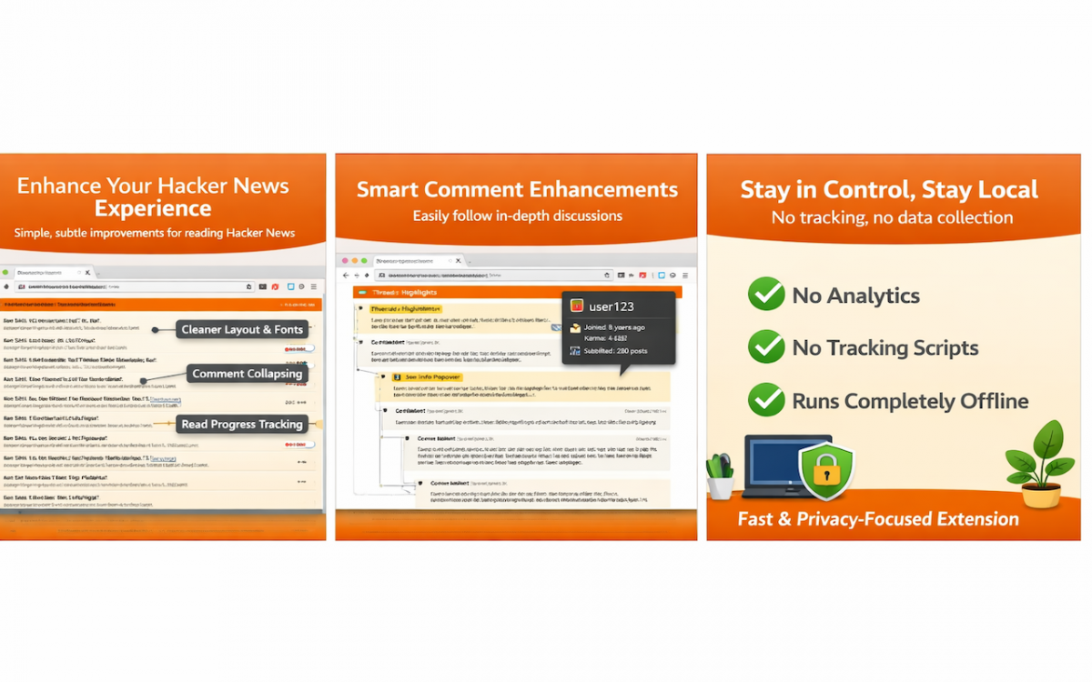 I’m also interested in exploring social features. HN is already a massive social network, but interactions feel fragmented. There’s room for tools that make engagement richer, not through obvious features like live chat, but through more creative, viral ideas I plan to experiment with. Keeping the extension open source is critical for trust; the last thing I want is for it to become a liability to the community.